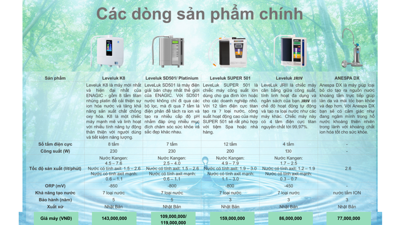 01. NƯỚC ĐỂ UỐNG: NƯỚC TRUNG TÍNH PH 7.0 VÀ NƯỚC KIỀM PH 8.5- 9.0- 9.5
