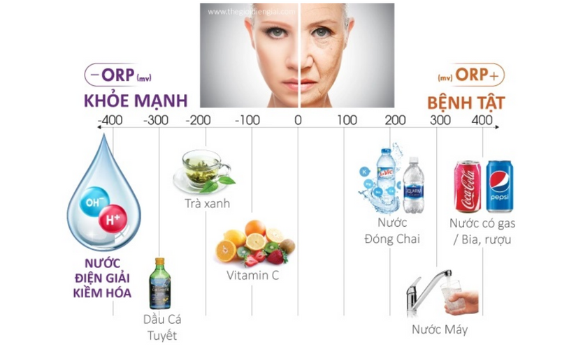 Sự hư hoại và lão hoá của tế bào bắt nguồn từ tình trạng thiếu nước và là do các nguyên tử gốc tự do này gây ra. Các loại máy lọc nước điện giải thường có độ chống oxi hoá dao động từ -200 đến – 800 ORP.