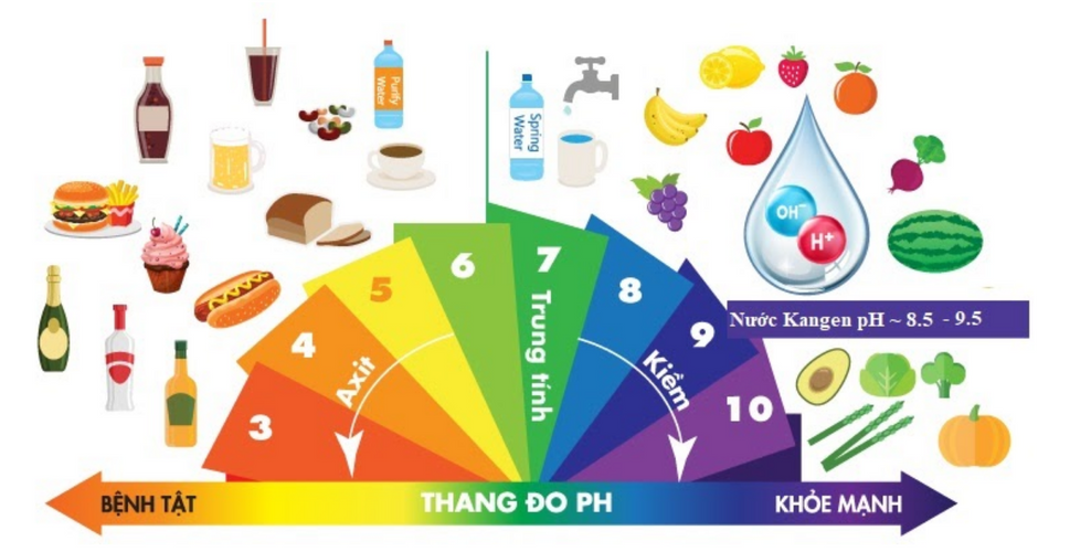 Hằng ngày cơ thể chúng ta thường xuyên phải nạp nhiều chất axit có từ các đồ ăn nhanh, đồ chiên rán, rượu bia … Những chất đó khi tích tụ lâu ngày trong cơ thể sẽ gây ra các căn bệnh nguy hiểm như đau dạ dày, gout, tim mạnh, viêm khớp … Nước Kangen giầu tính kiềm tự nhiên khi được sử dụng hàng ngày sẽ giúp đưa cơ thể về trạng thái cân bằng giữa kiềm và axit